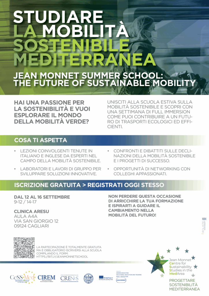 Lo Jean Monnet Centre for Sustainability Studies in the Med Area – CeSSMed, organizza la prima summer school dal titolo: The Future of Sustainability Mobility. Le lezioni si terranno dal 12 al 15 settembre 2023 e si concluderanno con una conferenza finale il giorno sabato 16 settembre.